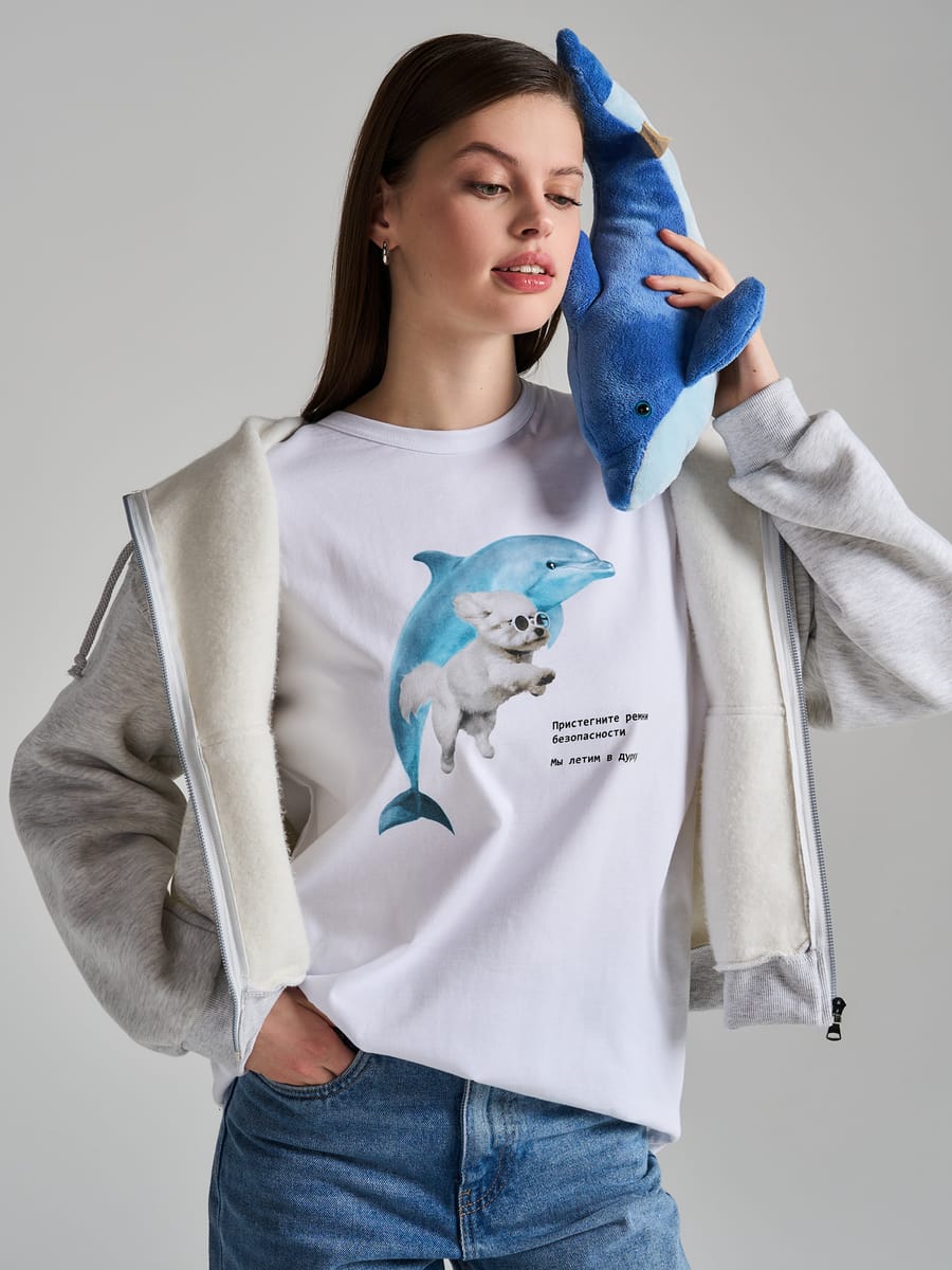 Футболка оверсайз с принтом Мы летим в дурку