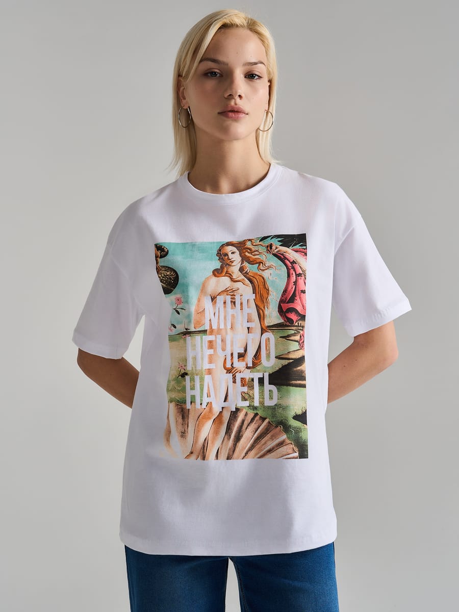 Футболки для девушек подходят подо все вещи в зависимости от ситуации - джинсы, велосипедки, леггинсы, юбки, спортивные штаны, брюки. Комбинируй их по настроению, чтобы чувствовать комфорт и уверенность в себе. А еще у нас есть тематические коллекции, в которых ты найдешь модели с любимыми персонажами. Только представь, сколько образов можно составить с каждой футболкой!