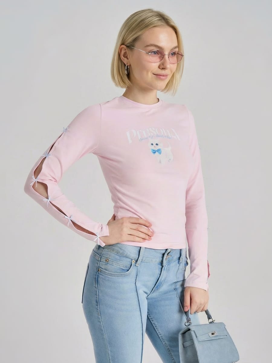Лонгслив приталенный с принтом