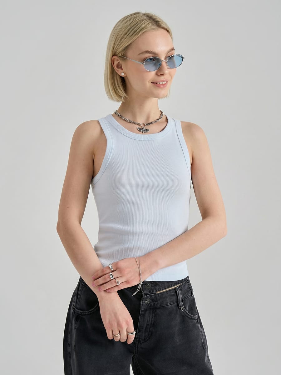 Женская майка от бренда ТВОЕ 2026 года — стильная и функциональная вещь, которая органично впишется в спортивный и повседневный гардероб. Модель в нежном голубом цвете выглядит актуально и легко комбинируется с самыми разными элементами одежды: от спортивных леггинсов до джинсов и юбок. Открытые плечи и широкие бретели добавляют дизайну лёгкости и динамики, подчёркивая молодёжный стиль и придавая ансамблю непринуждённую элегантность.