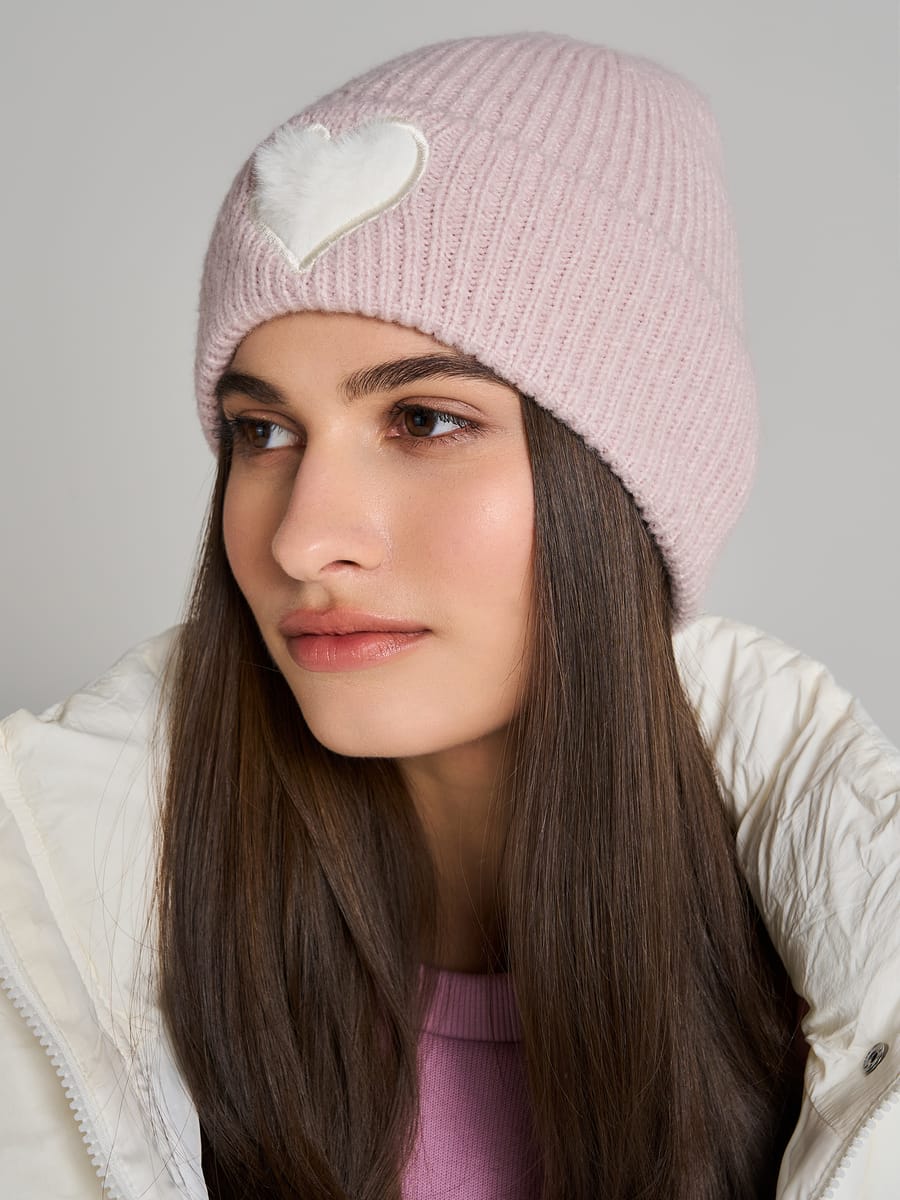 Вязаная шапка с плюшевым сердцем