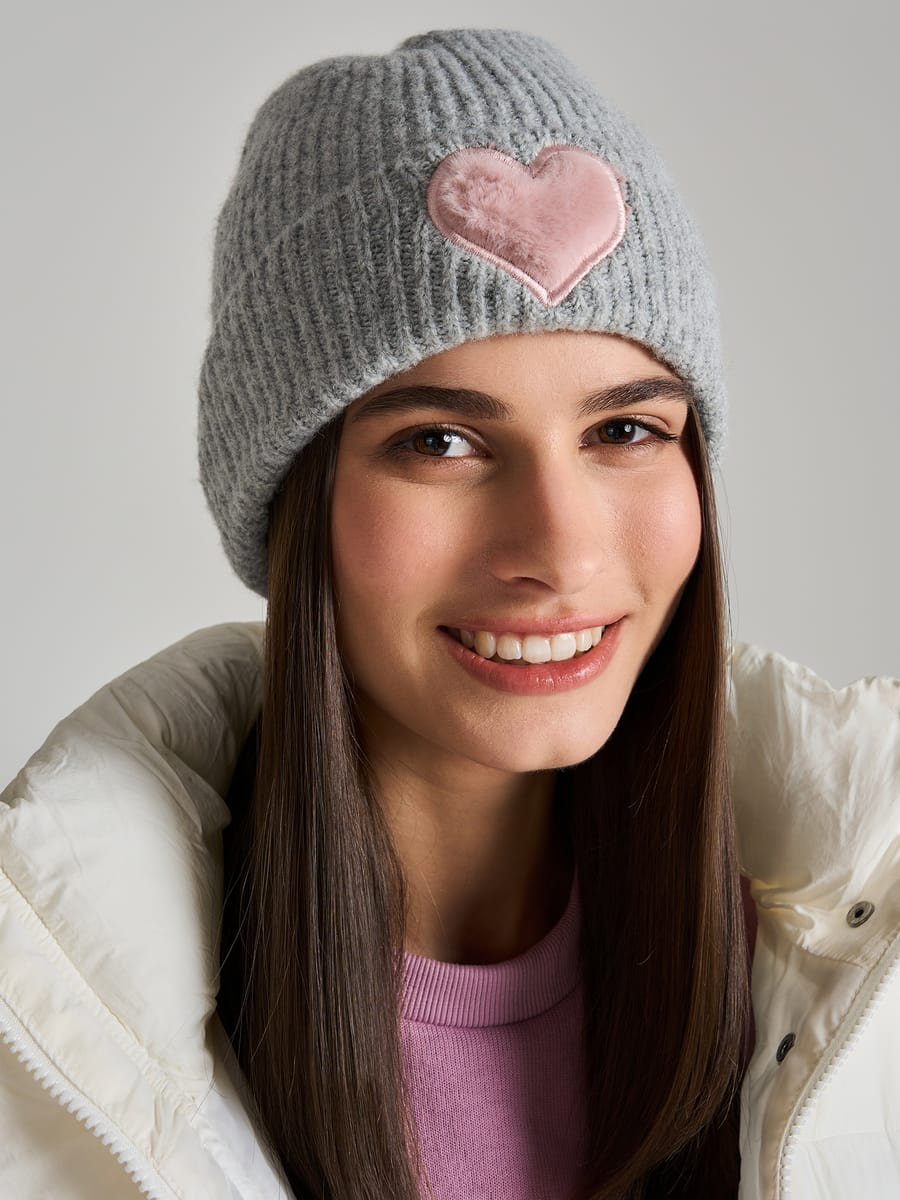 Вязаная шапка с плюшевым сердцем